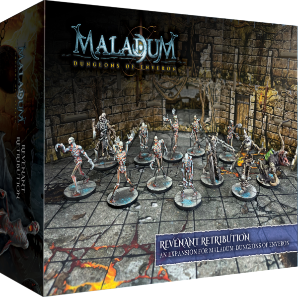 If you do not have enough miniatures when an adversary would enter play, the game “spawns down” when an adversary is not available (Hellfonts become Myria, Myria become Lamentors). Increasing the number of available miniatures slows down how often this happens and increases the number of enemy miniatures on the map creating more challenging fights for your party. Adding a copy of Revenant Retribution to your collection doubles the number of available Lamentors, Myria and Hellfonts in your games. It also comes with additional veteran cards to spice up your event deck,