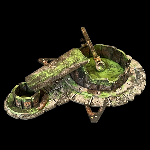 This is the local Malagaunt’s vat of magically infused chemicals. It clearly breaches a number of health and safety regulations, but it can come in handy. Interacting with it will expend your Magic pegs, but it can remove fatigue, restore health, or damage nearby Revenants. You can even tease out the threads of fate and get a preview of what the Event Deck has in store for you a few turns ahead.