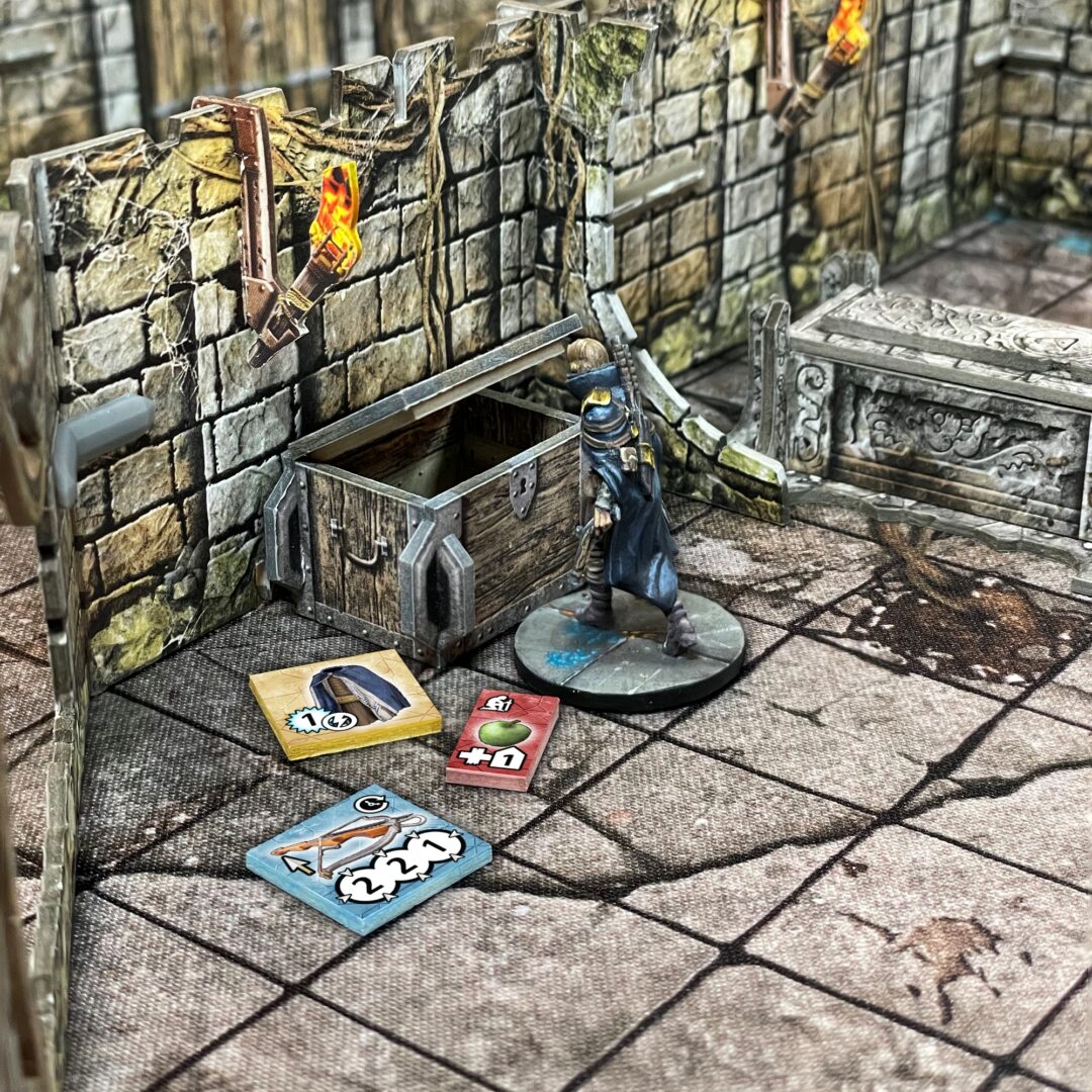 Sometimes the Malagaunt’s minions or other Denizens have helpfully illuminated the dungeon for you. You can Interact with a Sconce to gain a torch token, which can be very handy for the times that you venture into parts of the dungeon that haven’t been illuminated yet. On occasion, you’ll even have Quests that take place in dungeons with no light at all meaning that the light you bring with you will be essential. You can find out more about the rules for Darkness in an upcoming article, or in the rules download HERE.
