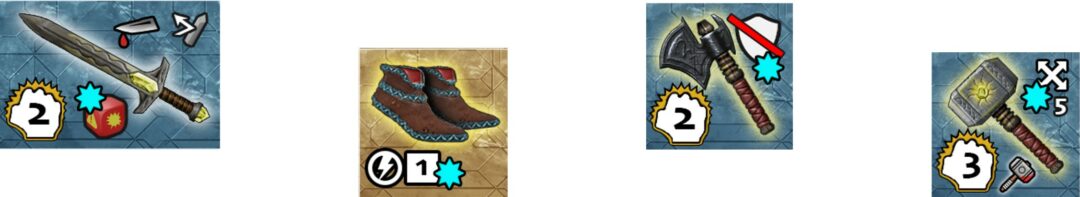 Some items grant a character a magic-related ability or Skill, while others have ‘channelled’ abilities, requiring the user to tune their Maladum with the item, spending pegs when the items are used to unlock their powers.