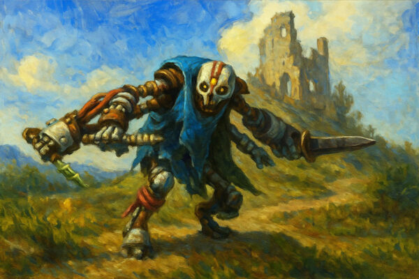 However, one possible future was suggested by a friend of ours, Andy of the youtube channel AJ Paints. He’s been kit-bashing the Rogue Purge as if they existed in Maladum. I think the idea is that they’ve been trapped and rusting away for thousands of years but are now free to roam Enveron.