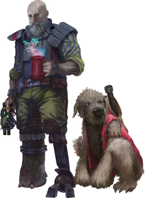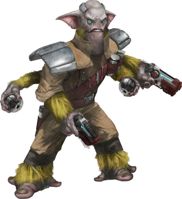 Yeti is a Kalieh, a species of small, extremely robust creatures known as much for their tall tales as their resilience. They like to embroider facts which makes them persona non gratis in polite society but extremely popular when spinning tales during drinking sessions. Usually gregarious the Kalieh are notoriously temperamental and can switch from laughing and joking to absolute fury within moments. Yeti acts as ship Tech but can double as support as he is considerably stronger than his size implies. His temperament has gotten him into some tough scrapes but his charm has gotten him out of even more. Yeti has no immediate family and is in many ways a drifter, one that happens to find the Trader life suitable for his needs.
