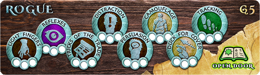 Greet the Rogue is in every way a support character starting with Distraction and Tricks of the Trade. She even has a support Spell in the form of Open Door. If you give her the Axe she can also fit into the role of damage dealer.