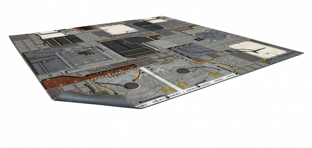 Available in 2'/60cm and 3'/90cm. This gaming mat depicts grungy sci-fi flooring, perfect for a space station or hive city.