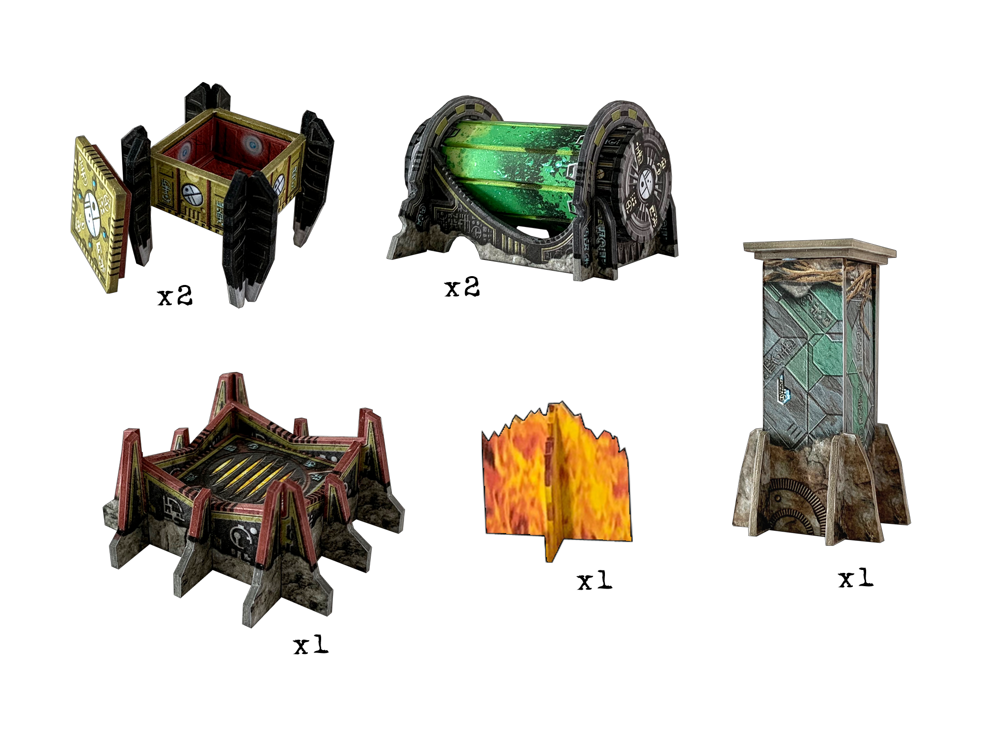 This pack contains additional accessories from the Alien Catacombs Set/Core Space First Born Starter Set for building larger gaming areas.