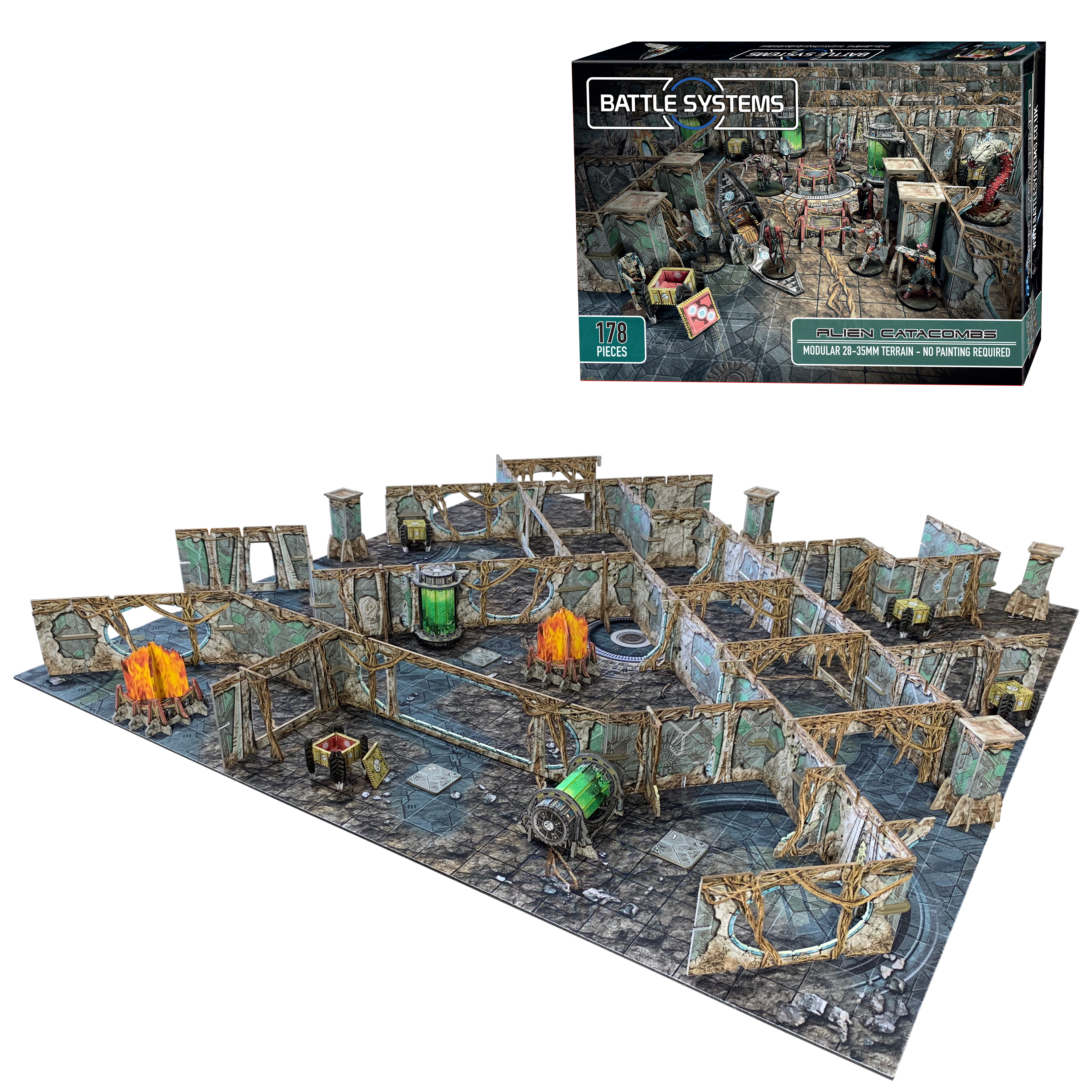 The terrain is supplied flat-packed on high-quality, high-density card, printed in full colour on both sides, so no painting required! The terrain requires assembly, and some smaller parts will require glue. Please see www.battlesystems.co.uk for more details and full instructions.