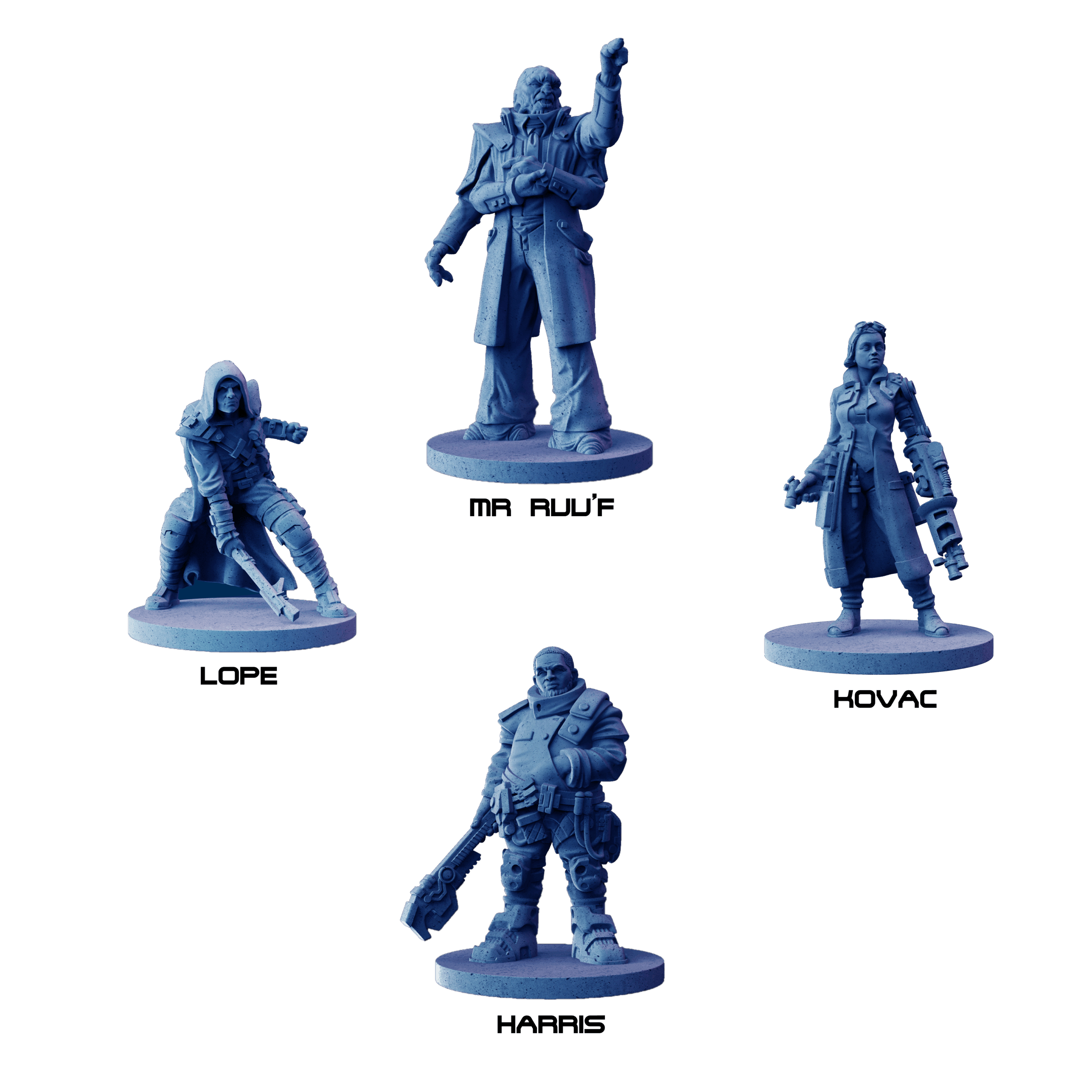 3D printable files of the four sci-fi Civilian miniatures from the Core Space Expansion Black Star Rising. It includes all the rules and components for free!