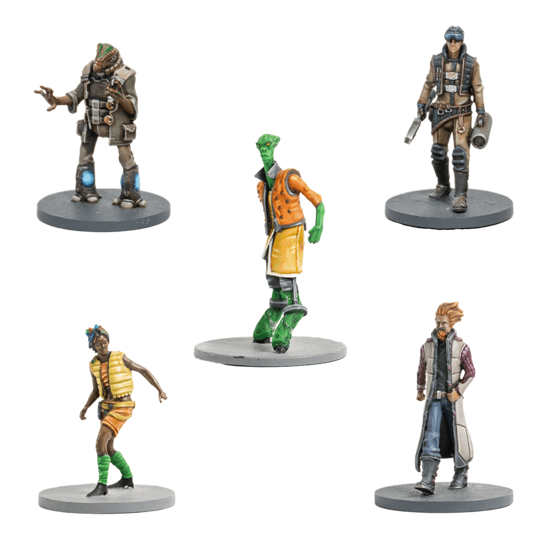 This Pack includes the two civilian miniatures from the Shootout at Zed’s expansion for Core Space, as well as the three civilian miniatures from the Core Space Starter Set in digital format.