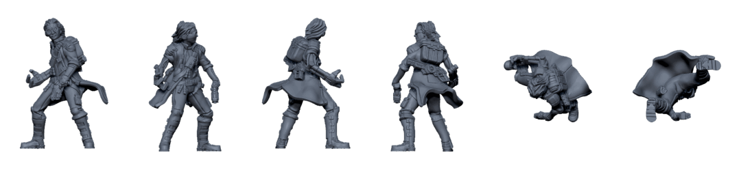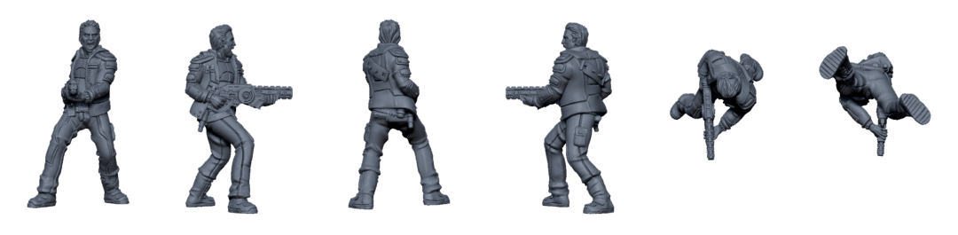 3D printable files of the four sci-fi mercenary miniatures from the Core Space Expansion Poseidon Crew. It includes all the rules and components for free!