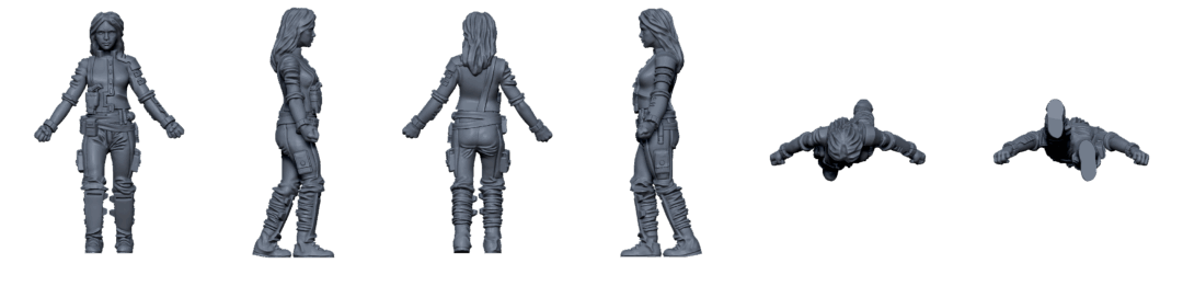 3D printable files of the Ellen, Human Soldier miniature from the Core Space Expansion Yamato Crew.