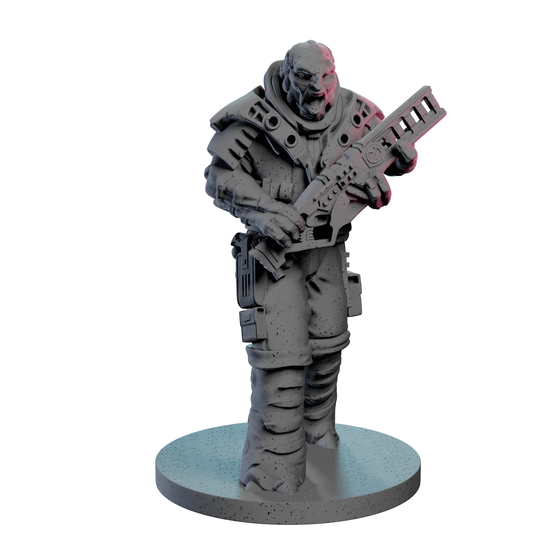 3D printable files of the Gak, Quell Warrior miniature from the Ion Hope Crew from the Core Space Starter Set.