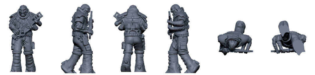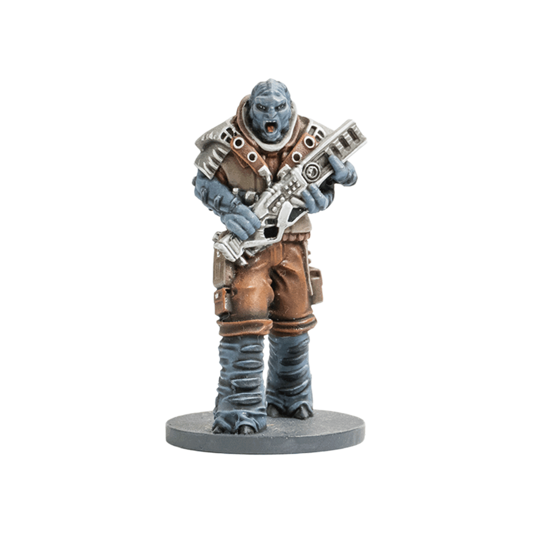 3D printable files of the Gak, Quell Warrior miniature from the Ion Hope Crew from the Core Space Starter Set.