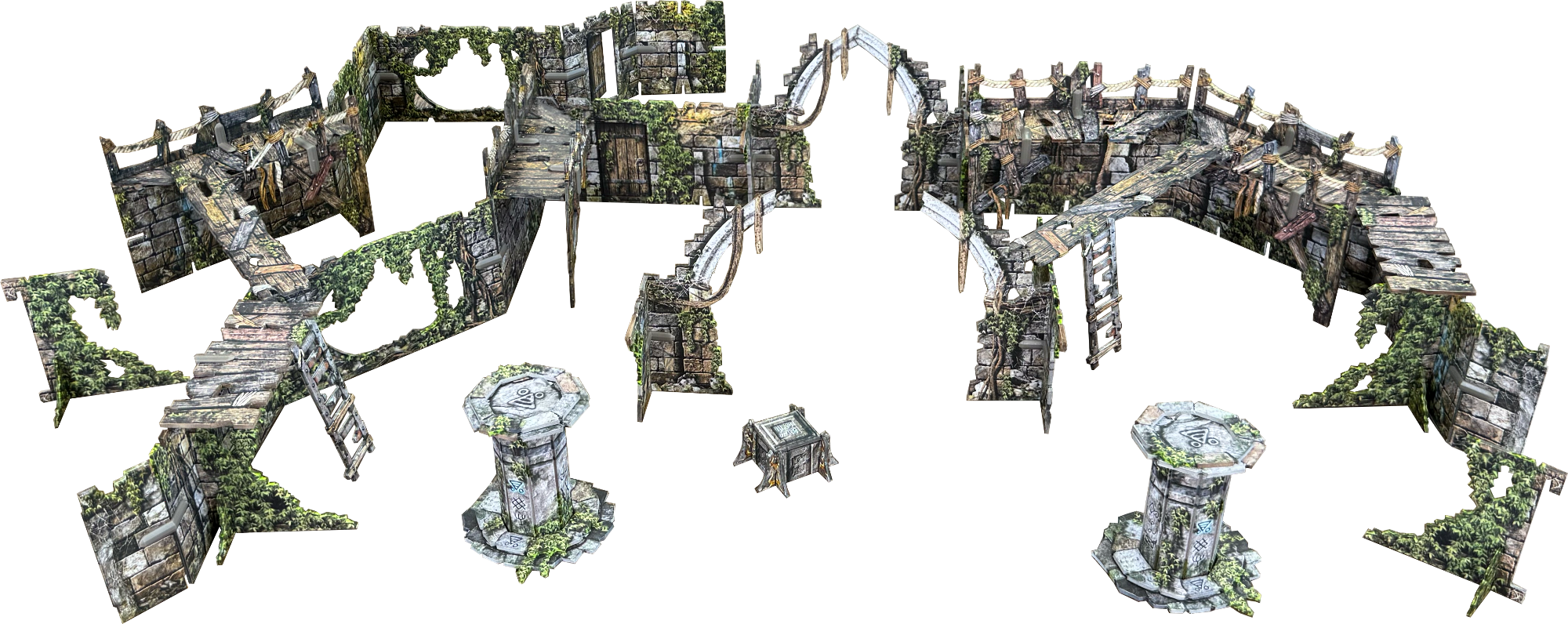 This terrain pack contains parts to build the overgrown Malagaunt’s sanctum, identical to the one in the Oblivion’s Maw expansion for Maladum.
