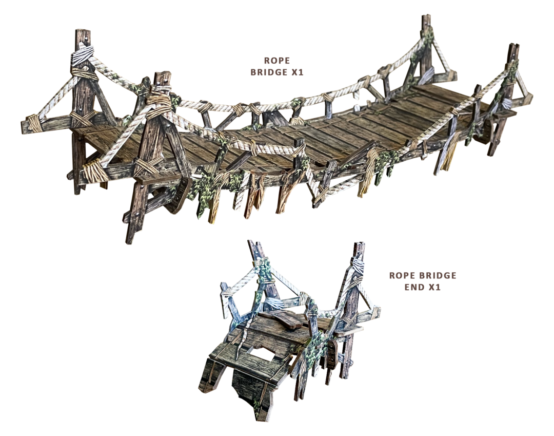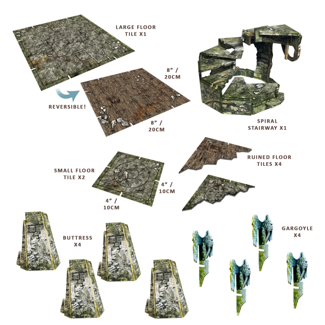 The terrain is supplied flat-packed on high-quality, high-density card, printed in full colour on both sides, so no painting required! The terrain requires assembly, and some smaller parts will require glue. Please see the Tutorial for more details and full instructions.