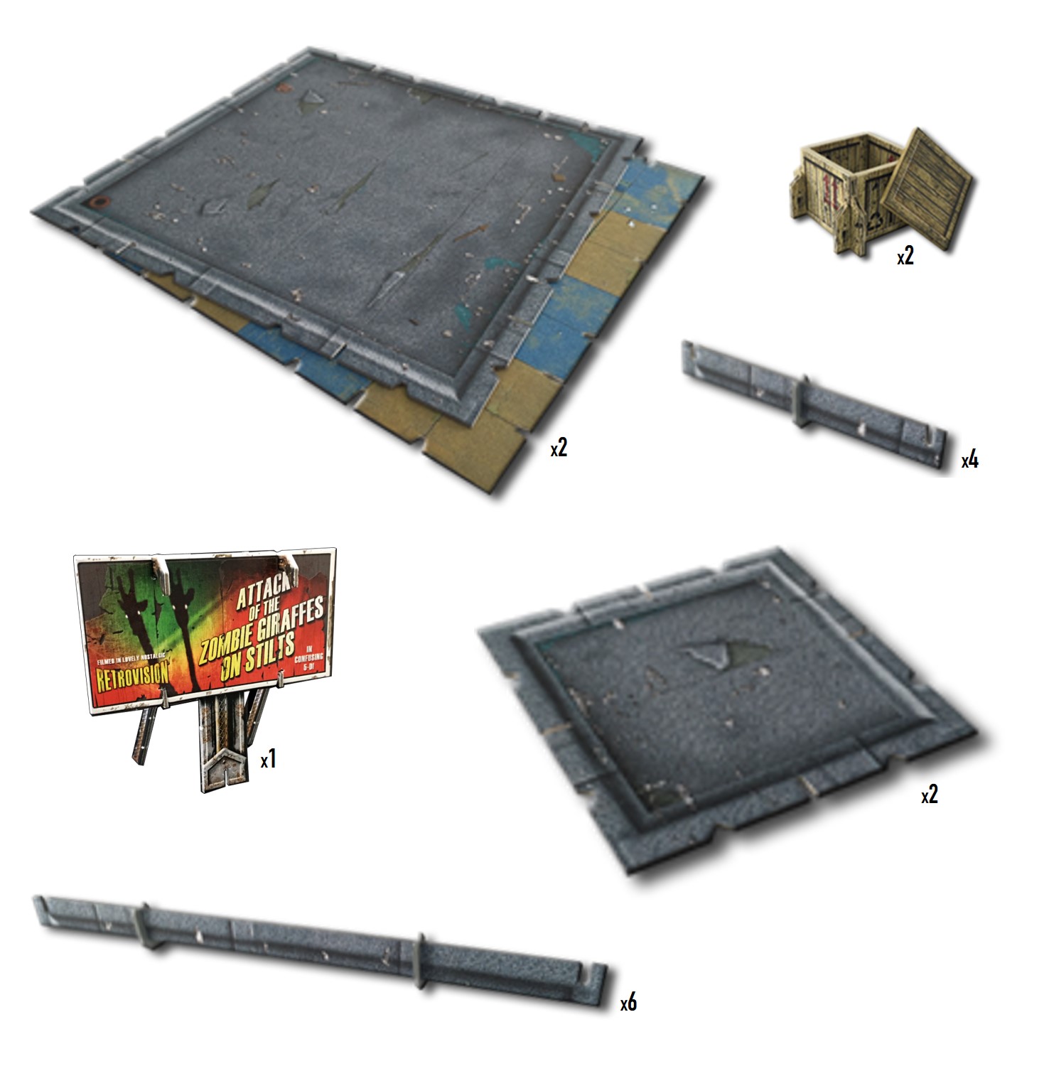 This pack contains additional accessories from the City Block Core Set for building larger gaming areas.