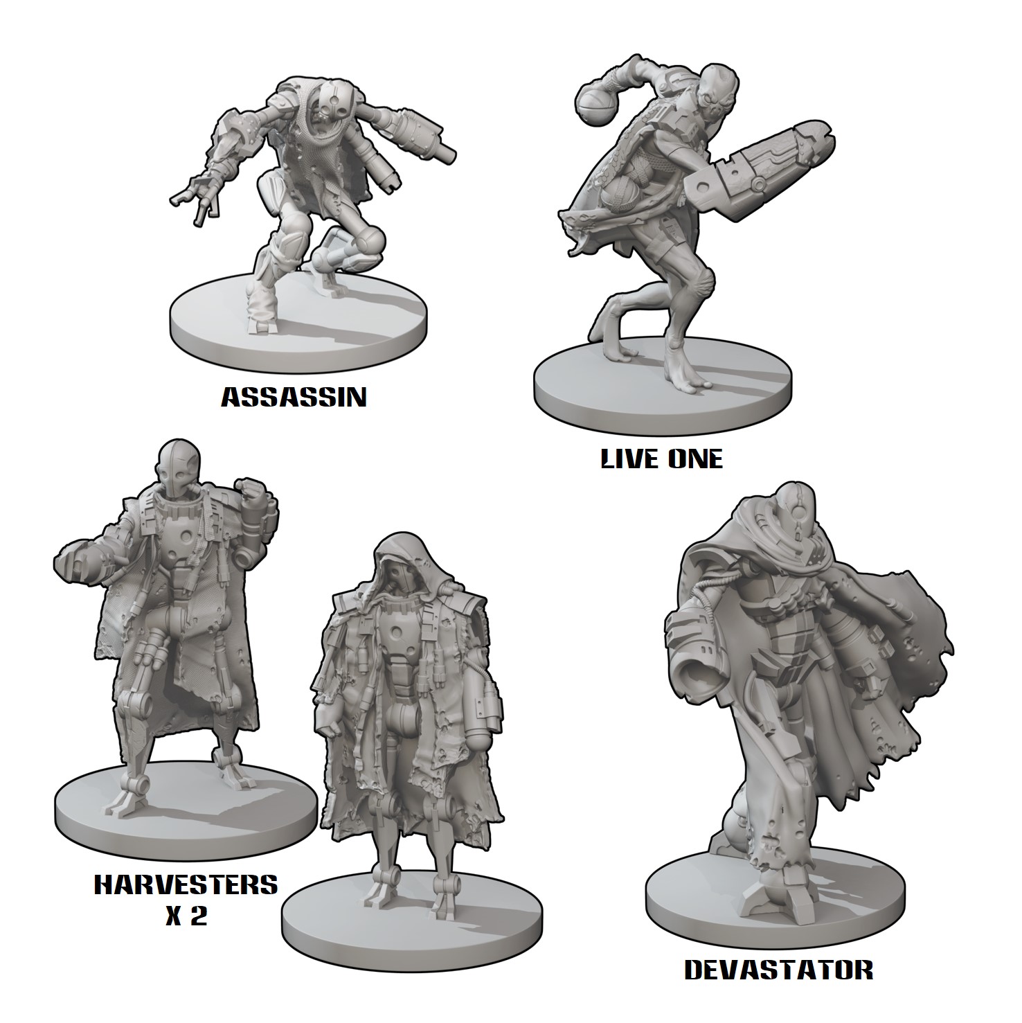 3D printable files of the five sci-fi robot miniatures from the Core Space Expansion Rogue Purge. It includes all the rules and components for free!