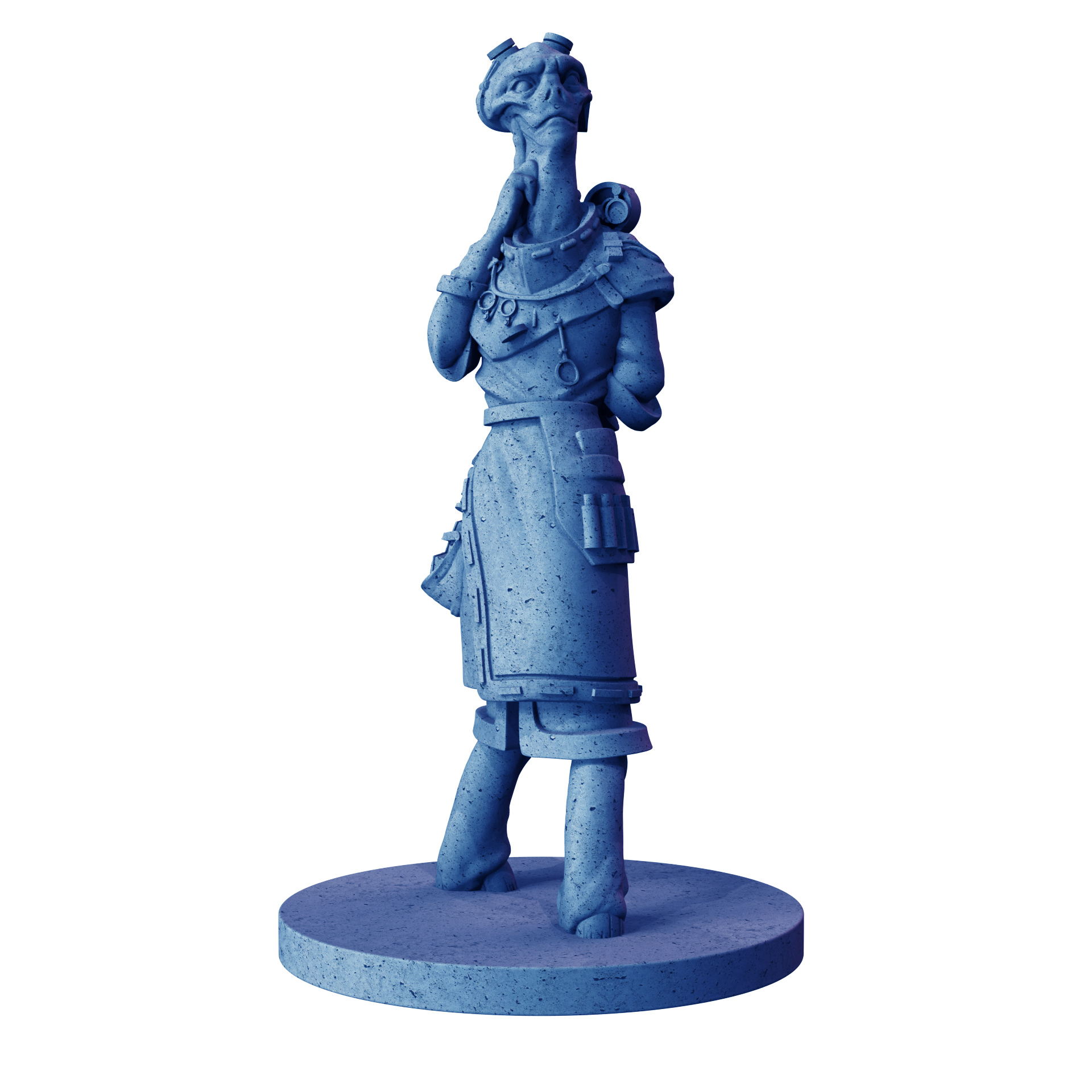 3D printable files of the Ros’lin, Ech Triune Scientist miniature from the Core Space Expansion Shift Change at MegaCorp.
