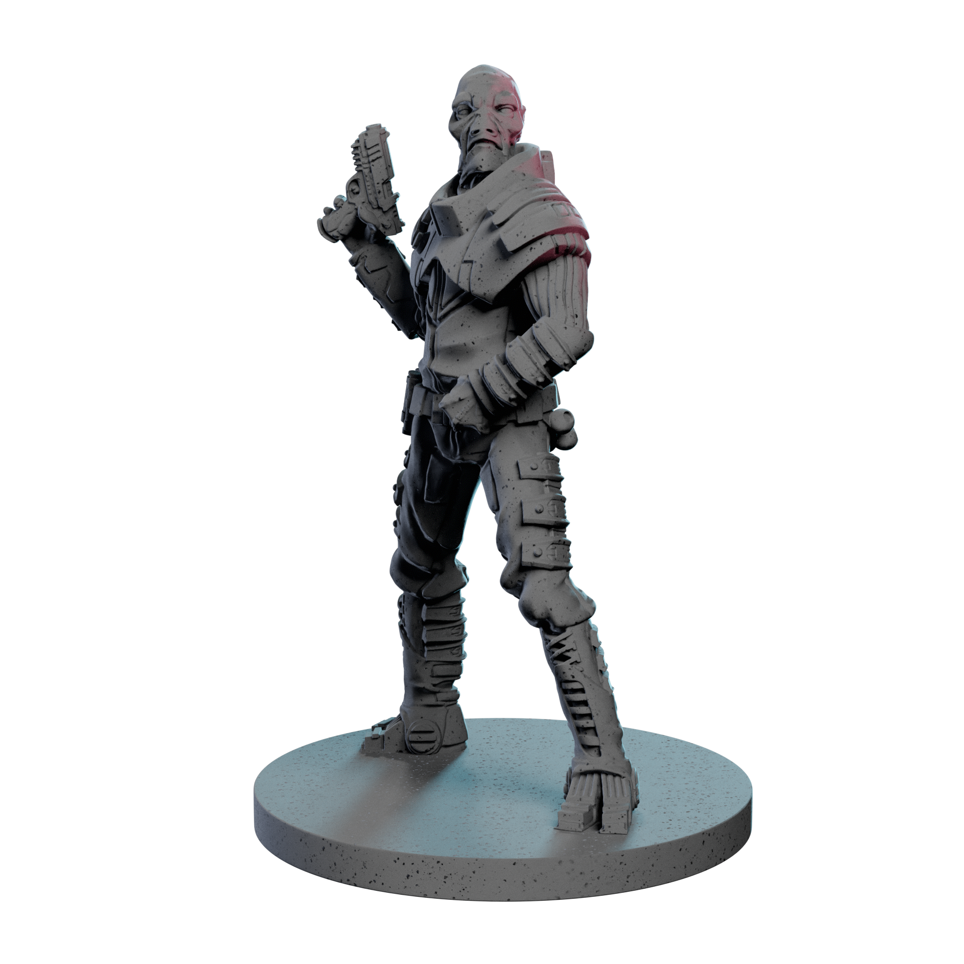 3D printable files of the Sondar, Ohrna Captain miniature from the Core Space Expansion Cygnus Crew.