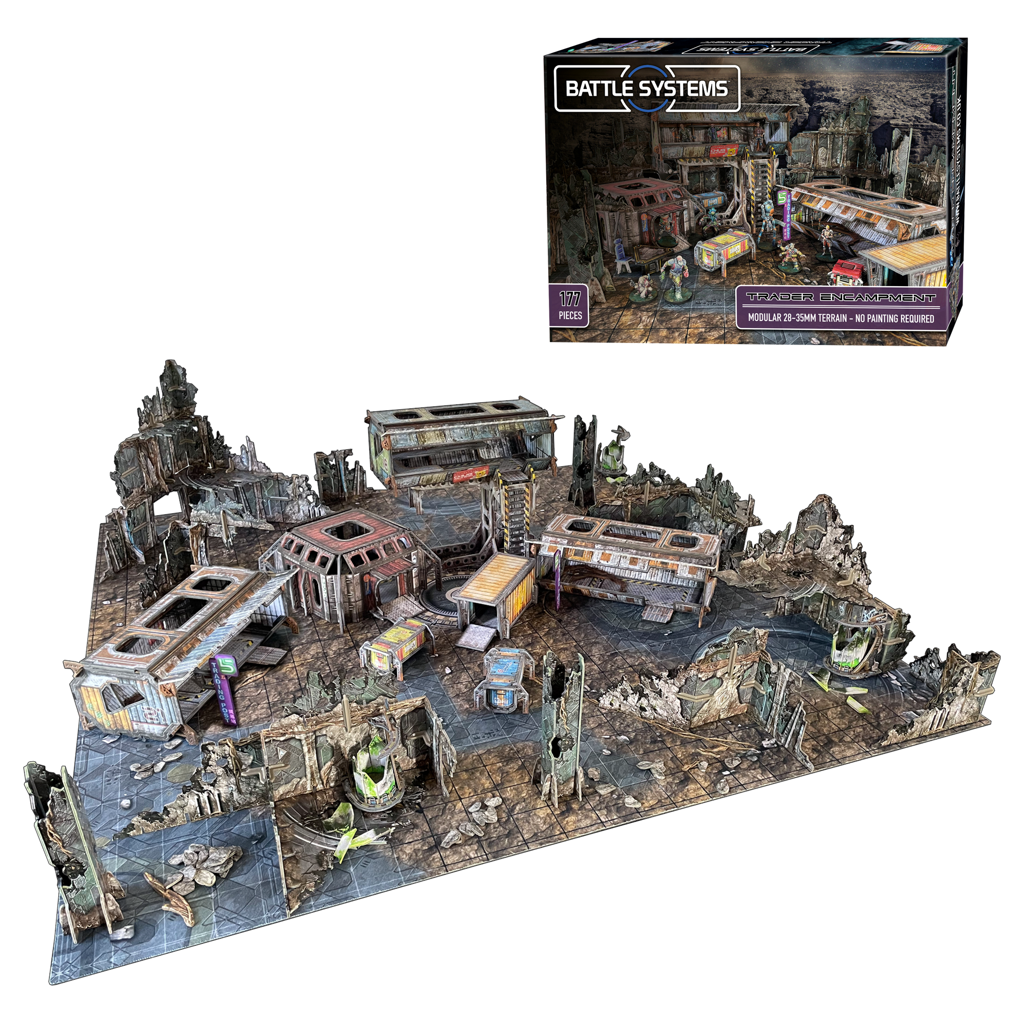 This box contains everything you need to build a multi-level gaming board covering an area of up to 2′ x 2′ / (600mm x 600mm) or larger, suitable for all 28-35mm sci-fi games in a remote makeshift trading post. All the pieces are modular and can be assembled in any combination you choose for a different set-up every time. The set can be expanded with other sets from the Battle Systems terrain range and is directly compatible with the Alien Catacombs and other Core Space: First Born terrain.